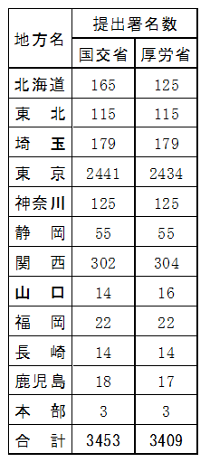 国交省へのシュプレヒコール、コ永副中央執行委員長による請願読み上げののち、参加者一人ひとりが国交省の係官へ請願書を提出しました。(集約)