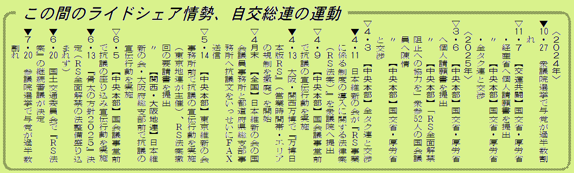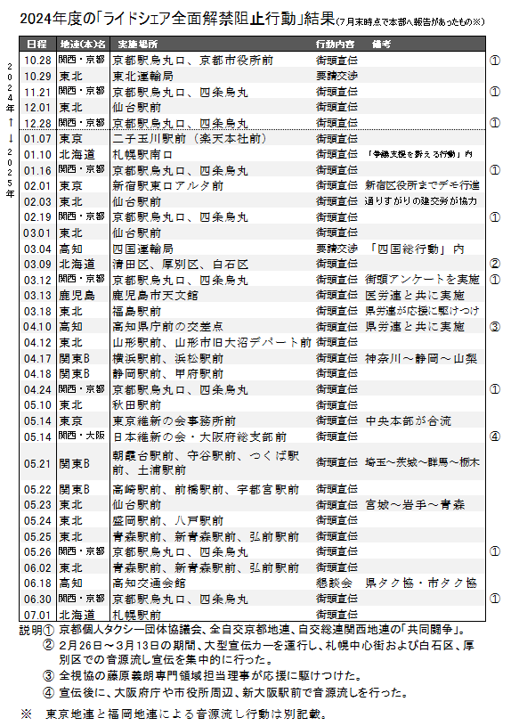 中央本部は、ライドシェア情勢の変化をみながら5回の全体行動を実施しました。(一覧)