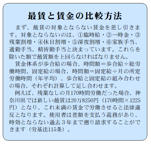 月十数万円という賃金の場合、最賃法違反かどうか計算してみる必要があります。